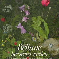 Step into the magic of Beltane, the Celtic Fire Festival of fertility, pleasure, and eros. This is a time to honor the green mantle of Brigid, goddess of healing, inspiration, and the sacred hearth nature. Brigid moves through the land like a blessing in motion: her cloak touches the earth, and wherever it falls, fertility, strength, and abundance spring forth. Rivers flow, crops flourish, and the wild herbs of the land — meadowsweet, angelica, St. John’s wort, yarrow, gorse, heather, honeysuckle, loosestrife — bloom with her energy. She is the protector and a poetess. In this mythic ceremony, you’ll connect with the flora kingdom of Ireland and create a personal love potion using handcrafted flower essences gathered in Ireland’s holy wells and sacred sites from Kimiko’s pilgrimage to the Emerald Isle. Gather under the full moon for a tea party of delights, with storytelling and a guided journey to connect with Brigid, the eternal muse and matriarch, bridging creativity, potency, and the sacred natural world. Celebrate with pleasure, abundance, and sisterhood. Tend to your inner garden — your wild womb of intuition, your source femme, your secret sovereign sanctuary.